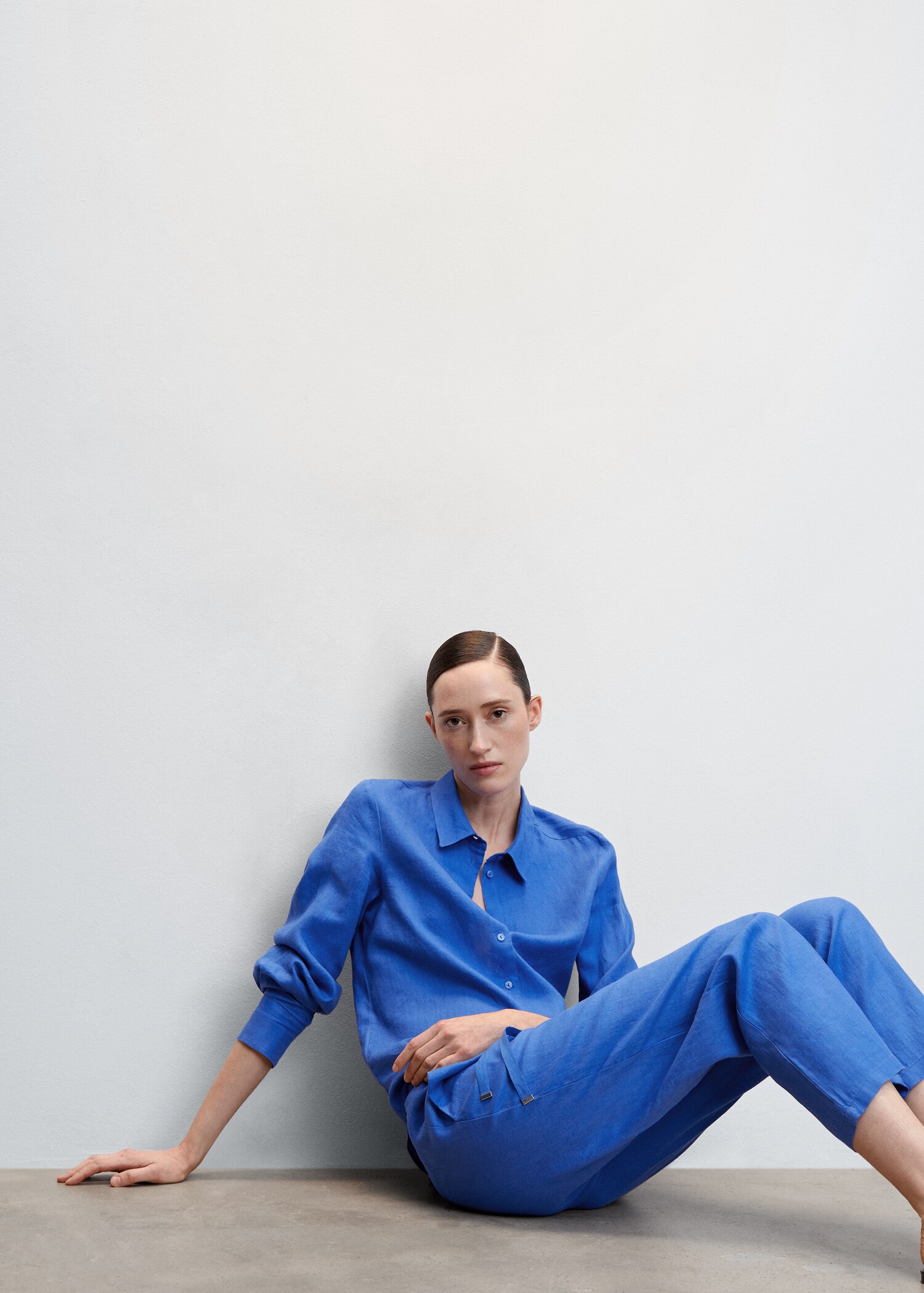 Linen fabric. Flowy fabric. Straight design. Shirt-style collar. Long sleeve with buttoned cuffs. Button fastening on the front section. Plus Size Available.