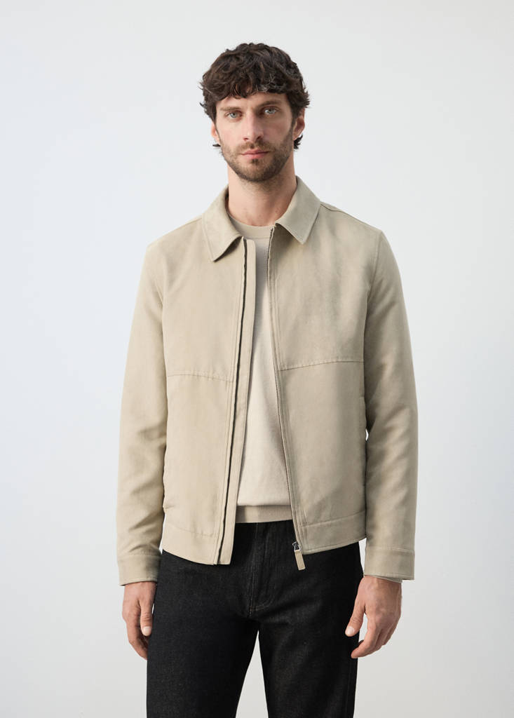 Suede effect jacketCurrent price [฿ 3,790.00 ]฿ 3,790.00Select a colourBeigeThe model is wearing size M and is 185cm tall.Select your sizeSDelivery in 10 to 15 working daysMDelivery in 10 to 15 working daysLDelivery in 10 to 15 working daysXLDelivery in 10 to 15 working daysXXLDelivery in 10 to 15 working daysDimensionsAddAdd to your wishlistSee lookConvenient home deliveryThe beige colour is an online exclusive. Suede-effect fabric. Regular fit. Standard Length. Shirt collar. Inner lining. Zip closure. Two side welt pocketsDetails, composition and careStore availability