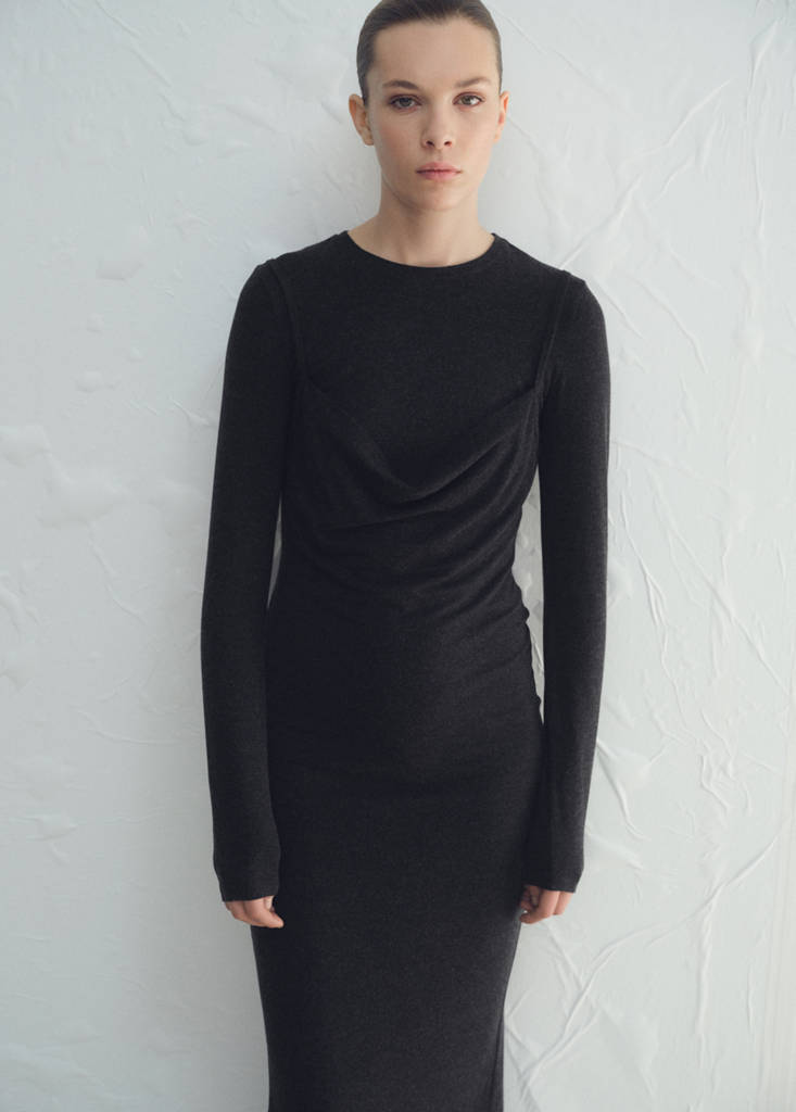 ดีไซน์ยาว. ดีไซน์เข้ารูป. คอกลม. แขนยาว. ไม่มีการปิด. ผ่าหลังที่ชายเสื้อ