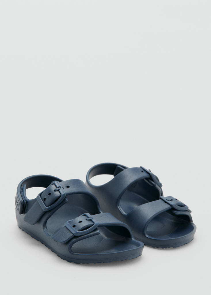 Finition gomme. Brides avec fermeture à boucle. Semelle en caoutchouc. Fermeture à lanière à l’arrière en Velcro. Collection bain