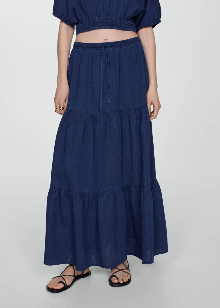 Tissu en bambula. Design long. Bas évasé. Taille élastiquée. Cordon de serrage à la taille. Total look. Tissu 100% coton