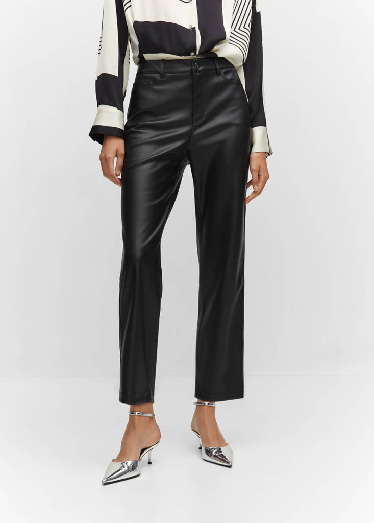 Effet cuir. Coupe droite. Design long. Taille mi-haute. Passants de ceinture. Cinq poches. Fermeture éclair et bouton. La couleur écrue est une exclusivité en ligne. Disponible en grande taille. Looks de bureau. Design crop. Coutures décoratives
