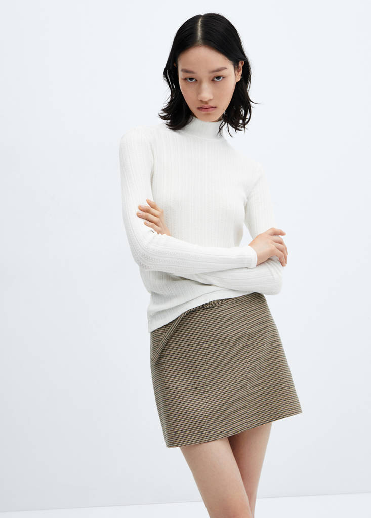 Tissu en mélange de coton. Maille. Coupe droite. Avec texture. Col montant. Manche longue