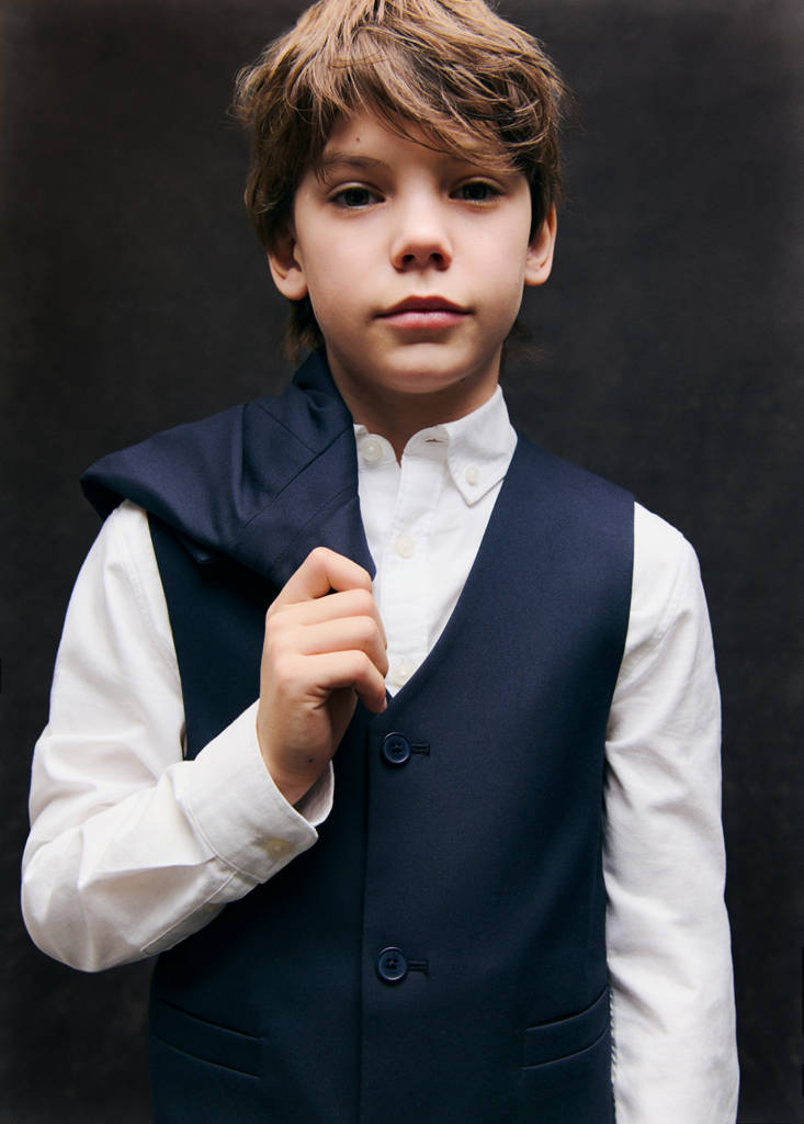 Slim fit. Coupe courte. Col en V. Sans manches. Fermeture à boutons. Doublure intérieure. Collection cérémonie