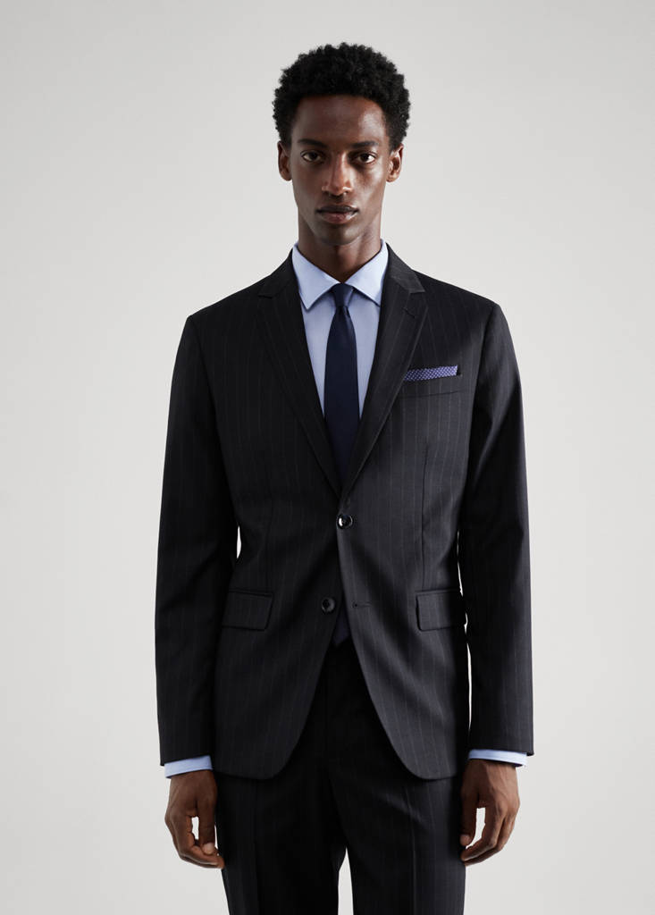 Slim fit. Confectionné en polyester recyclé, une fibre résistante, respirante et facile d'entretien qui permet un grand confort d’utilisation. Comfort Stretch : Tissu élastique pour plus de confort. Imprimé à rayures diplomatiques. Revers à encoche. Poche passepoilée sur la poitrine. Deux poches à rabat sur le devant. Fermeture à boutons. Double ouverture au dos. Doublure. Poche intérieure. Collection tailleur. Manches longues boutonnées. Confort : Ce vêtement offre une liberté de mouvement totale et retrouve sa forme initiale