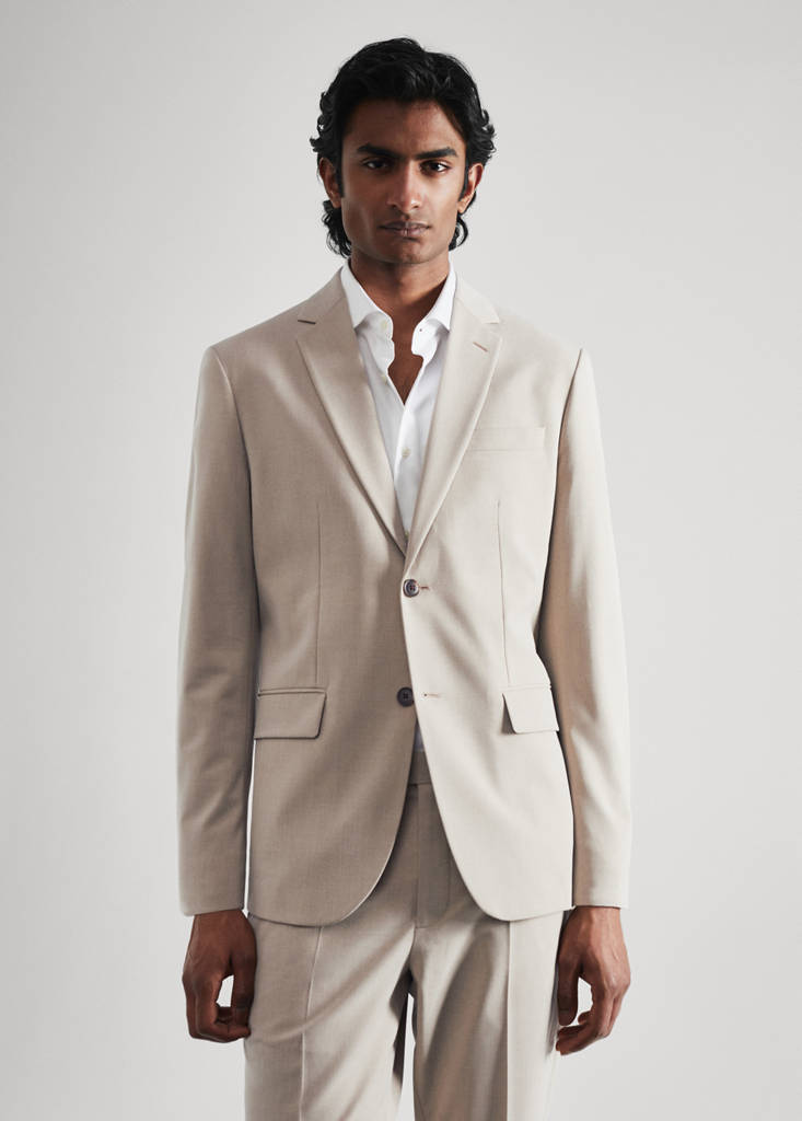 Slim fit. Confectionné en polyester recyclé, une fibre résistante, respirante et facile d'entretien qui permet un grand confort d’utilisation. Comfort Stretch : Tissu élastique pour plus de confort. Revers à encoche. Poche passepoilée sur la poitrine. Deux poches à rabat sur le devant. Fermeture à boutons. Double ouverture au dos. Doublure. Poche intérieure. Collection tailleur. Confort : Ce vêtement offre une liberté de mouvement totale et retrouve sa forme initiale. Manches longues boutonnées. Style 7/8. Fermeture à boutons sur le devant