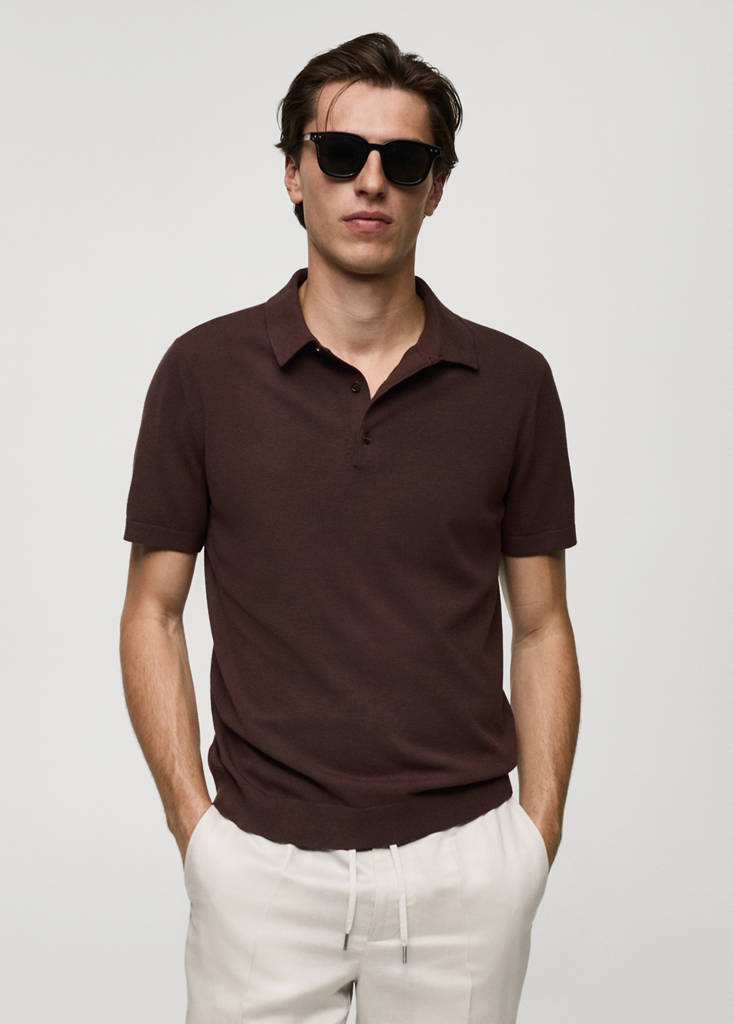 Slim fit. Maille fine. Col polo. Fermeture à boutons au col. Manche courte. Ourlet droit. Les couleurs turquoise et marron café sont des exclusivités en ligne. Bords côtelés au niveau du col, des manches et sur le bas. Bords côtelés élastiques