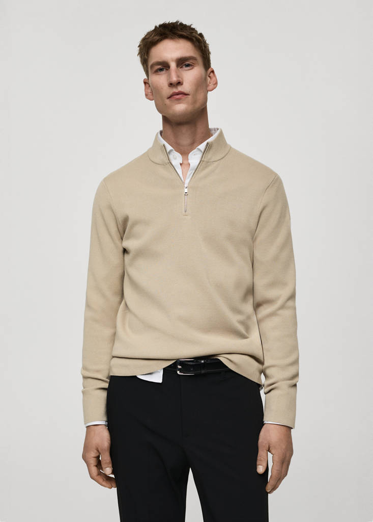 Coupe regular. Maille fine. Col montant à fermeture Éclair. Col côtelé. Manche longue. Ourlet droit