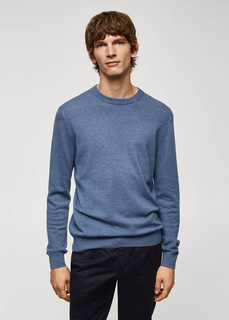 ESSENTIALS: Conçus pour durer. Tissu mélangé laine et cachemire. Coupe regular. Maille fine. Col rond. Manche longue. Ourlet droit. Les couleurs bleu ciel et gris clair sont des exclusivités en ligne. Bords côtelés au niveau du col, des manches et sur le bas