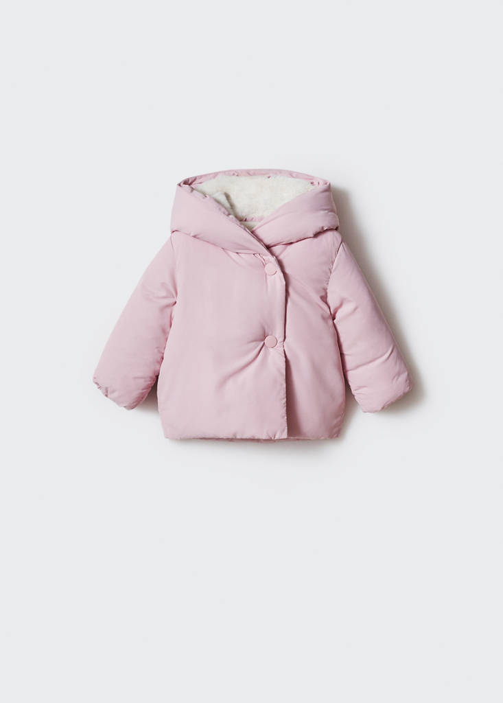 Tissu polyester. Coupe droite. Coupe courte. Intérieur moutonnée. Fermeture par boutons-pression. Étiquette d'identité à l'intérieur