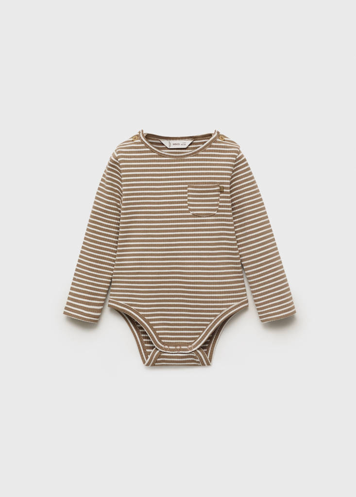 Confectionné dans un tissu en mélange de coton, ce modèle ajusté présente un style body à rayures. Col rond, manches courtes et poche plaquée sur la poitrine. Fermeture à boutons-pression