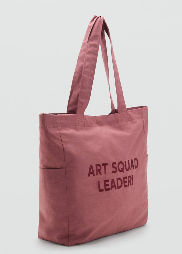 %100 pamuk kumaş. Tote çanta tasarımı. İki omuz askısı. İki yan cep. Çıtçıt düğme kapamalı. Astarı çizgili. İşlemeli metin. Koleksiyondaki kozmetik çantasıyla kombinleyin