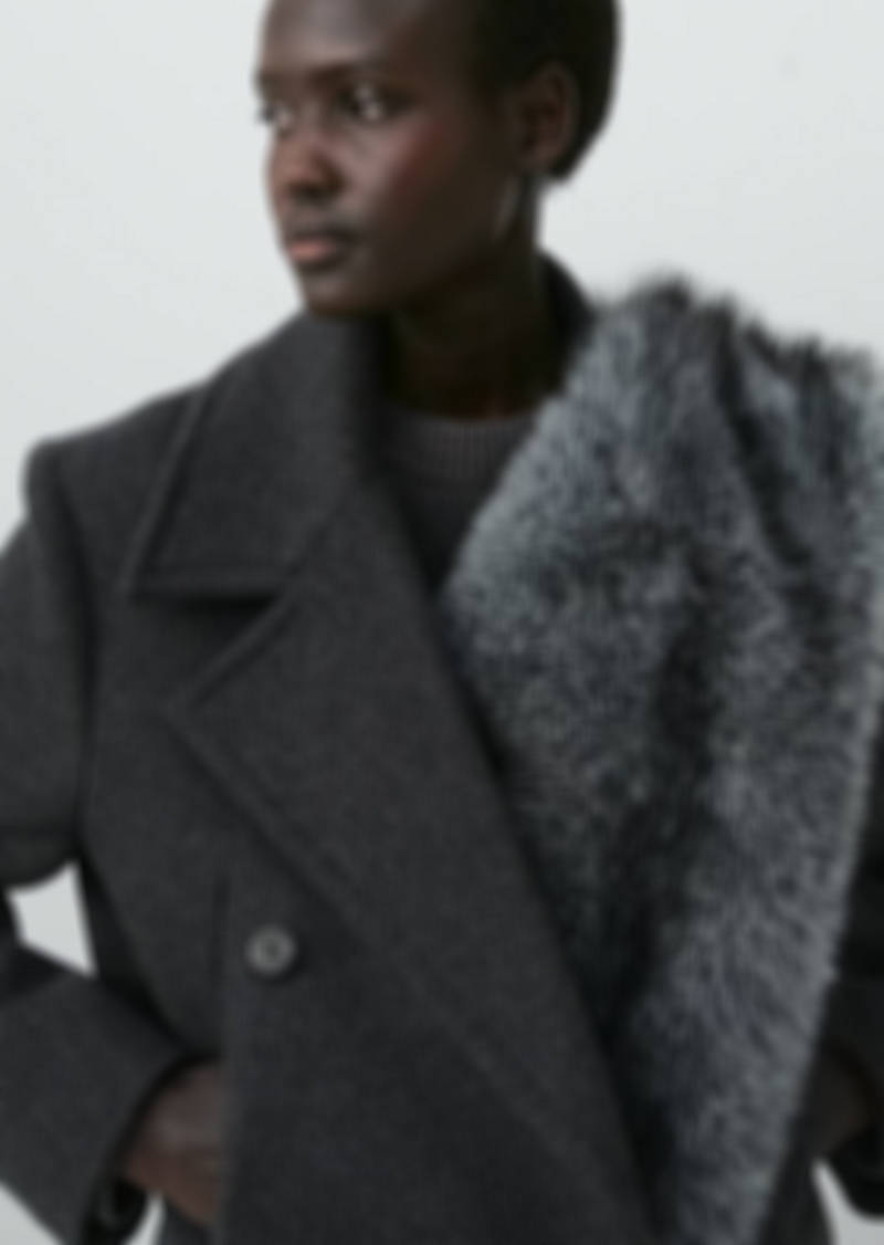 Yün kumaştan üretilmiş bu oversize tasarım, klapalı bir V yakaya sahiptir. Uzun kollu, süs cepli ve çift sıra düğmeli kapaması bulunmaktadır. İç astarlıdır. Selection Koleksiyonu'nun bir parçasıdır