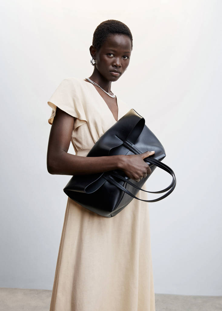 Long design. Linen mix. V-neck. Short sleeve. Straight design. Midi design