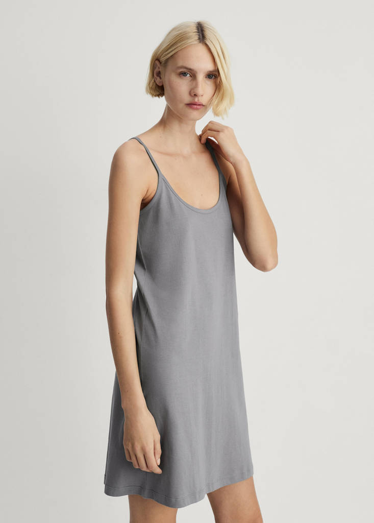 Plain cotton nightgown with strapsCurrent price [NT$ 1,190.00 ]NT$ 1,190.00Select a colourMedium GreyThe model is wearing size S and is 179cm tall.Select your sizeSMLAdd to WishlistSee lookFree delivery to store100% cotton fabric. Short design. Round neck. Available in two coloursDetails, composition and careStore availability
