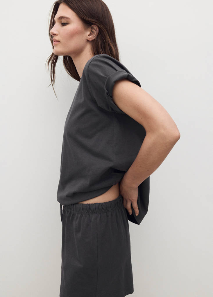 T-shirt and pyjama trousers set. 100% Cotton. Short design. Round neck. Adjustable drawstring. Pleasant texture. Combines comfort and style. Available in different colours.