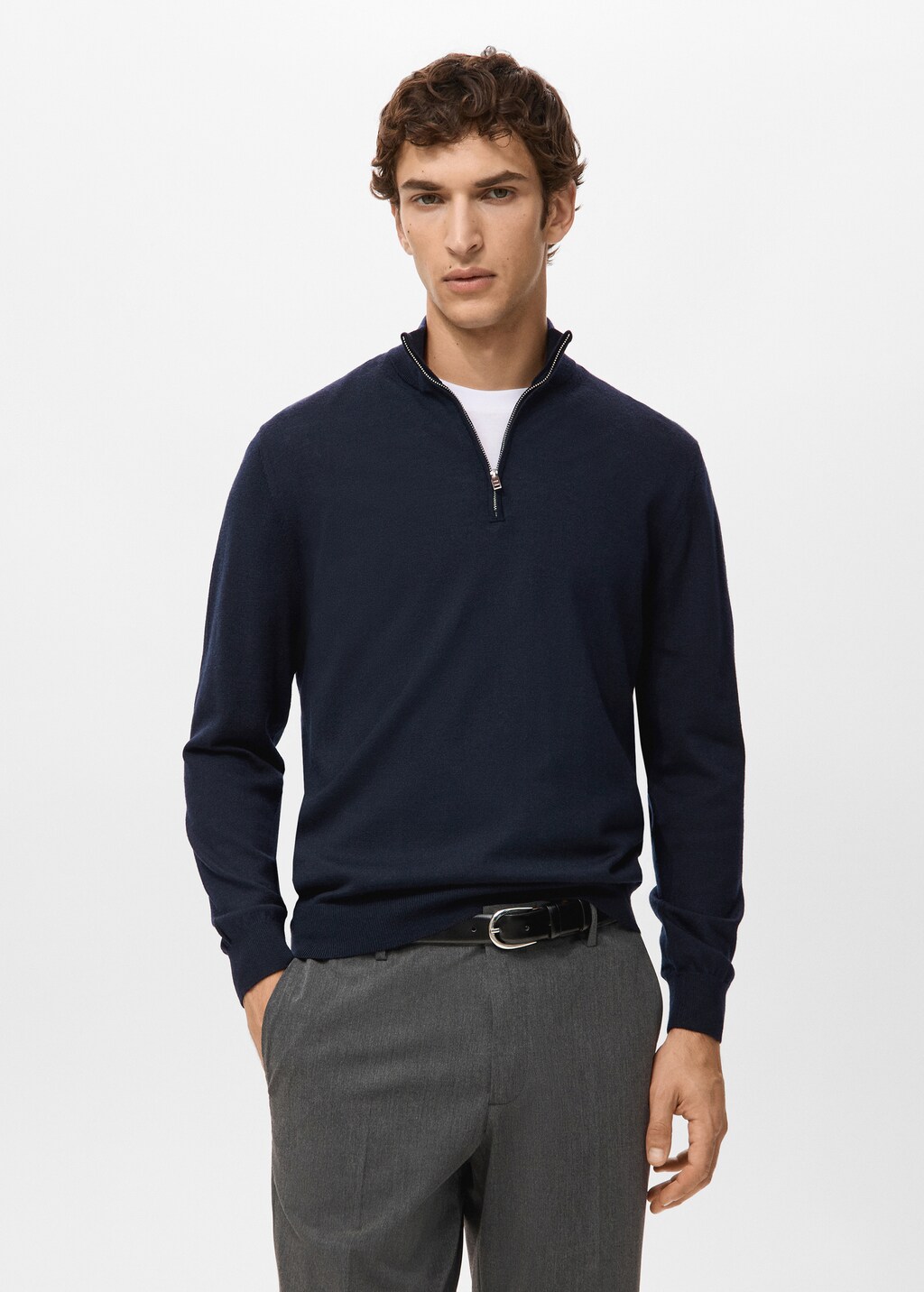 Regular fit. 100% merino wool. Fine-knit fabric. Perkins collar with zip closure. Long sleeves with elastic cuffs. Ribbed collar, sleeves and hem.