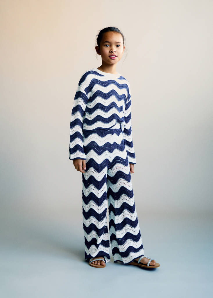100% Cotton. Oversized design. Midpoint. Open-knit fabric. Zig-zag stripes. Crop design. Round neck. Long sleeves. No Fastening. Total look