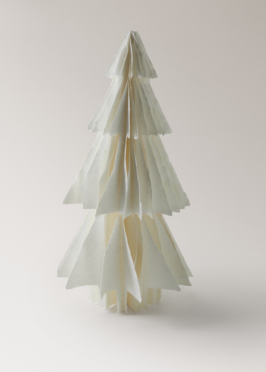 100% paper. Size: 80 cm. This large paper Christmas tree is a decorative ornament with a minimalist and elegant design. Made entirely from paper, giving it a modern and environmentally friendly touch. With a height of 80 centimetres, it is ideal as a centrepiece for decorating interior spaces with Christmas style without taking up too much space. Christmas Collection.