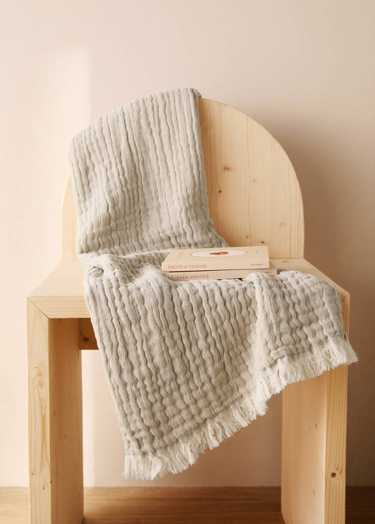GAUZE / Made in PortugalCotton muslin baby blanketCurrent price [грн. 1,499.00 ]грн. 1,499.00Select a colourSandSelect your size70X100cmNot available. I want it!Notify meAdd to WishlistSee lookFree delivery to storeChildren's blanket. 100% Cotton. Size: 70x100 cm. Cotton gauze fabric with creased effect. Pleasant and soft touch. Machine washable. Available in different coloursDetails, composition and careStore availability