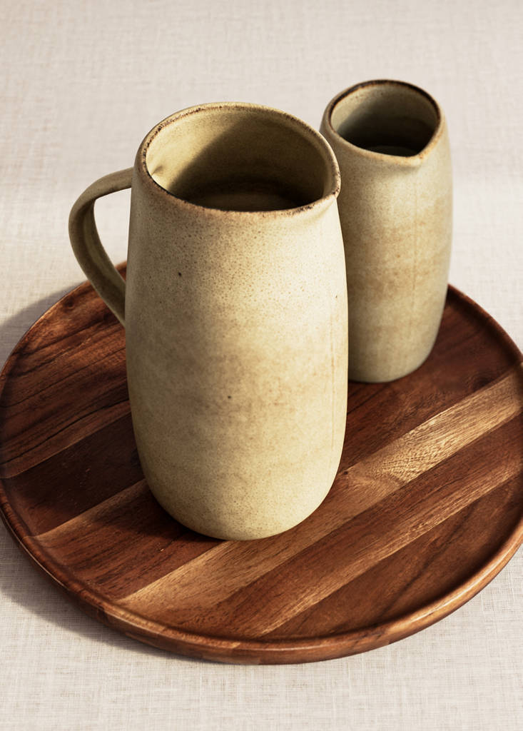 100% stoneware. Diameter: 14.5 cm. Height: 22 cm. The texture of the stoneware gives them a slightly grainy and natural appearance. Stoneware is renowned for its durability and resistance, ensuring a good appearance and quality over time