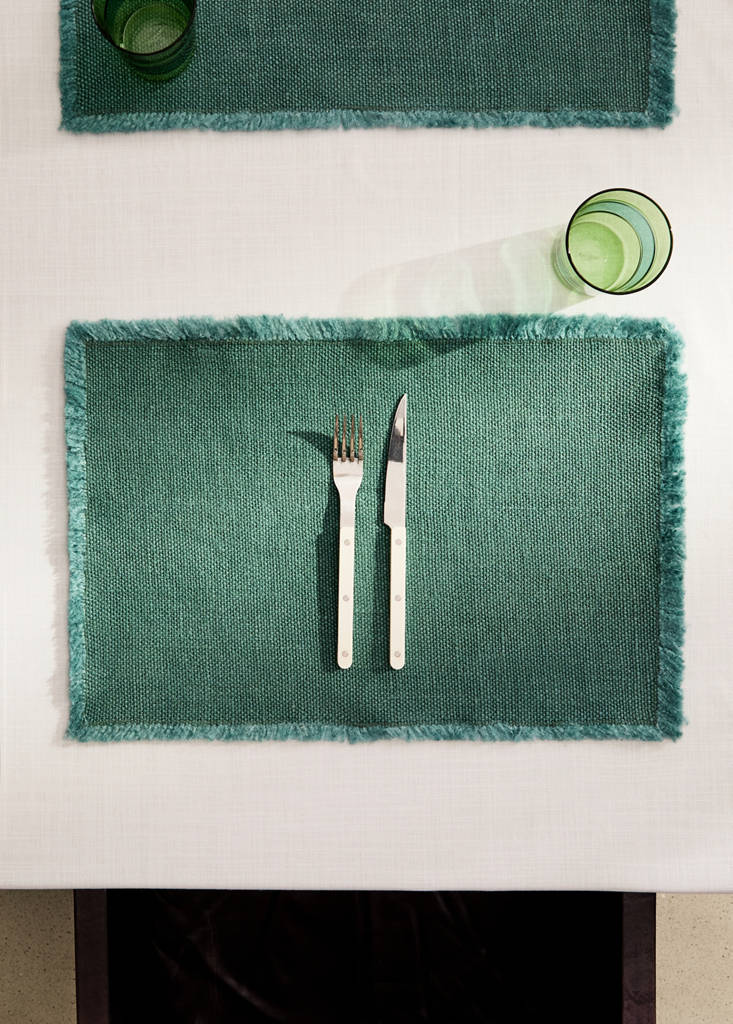 Frayed jute table matCurrent price [грн. 849.00 ]грн. 849.00Select a colourGreenSelect your size35x50cmAddAdd to your wishlistSee lookFree delivery to store100% jute fabric. Size: 35x50cm. frayed finish. Cool, soft, durable, breathable and versatile. Ideal for adding elegance and freshness to the table. Available in different colours. Sold by unitDetails, composition and careStore availability