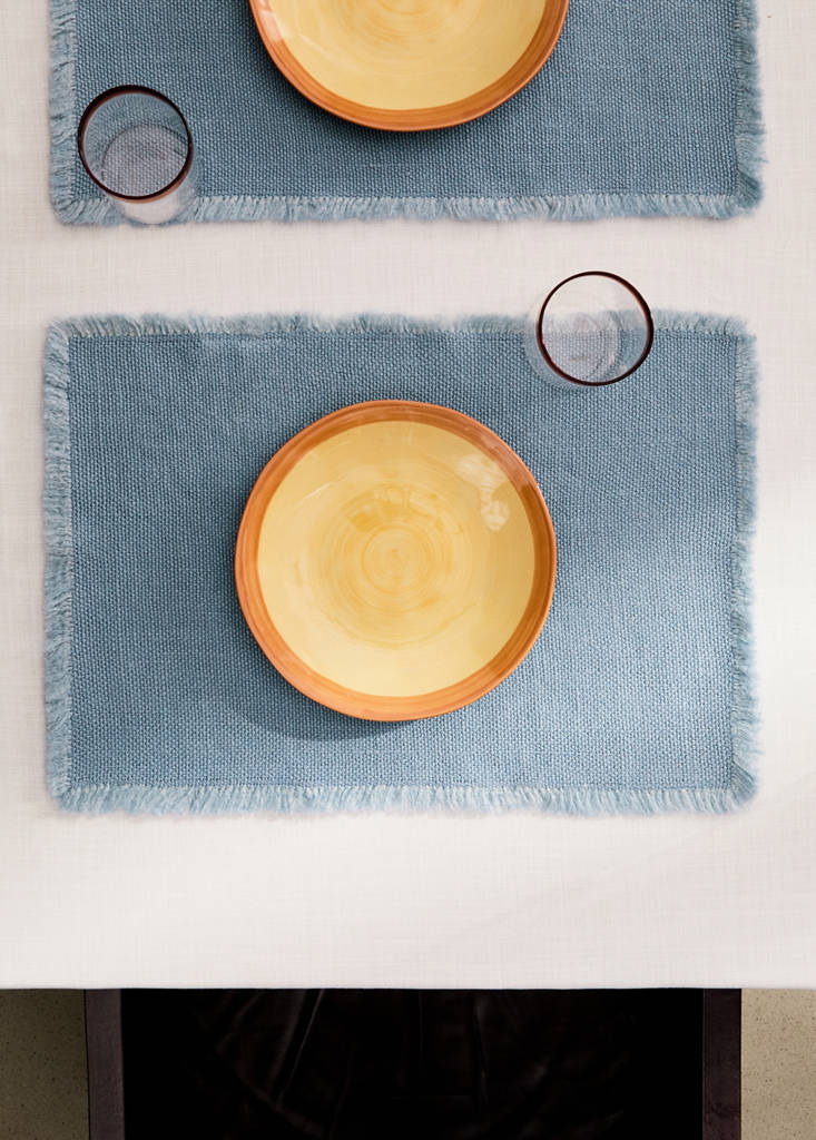 Frayed jute table matCurrent price [грн. 849.00 ]грн. 849.00Select a colourBlueSelect your size35x50cmAddAdd to your wishlistSee lookFree delivery to store100% jute fabric. Size: 35x50cm. frayed finish. Cool, soft, durable, breathable and versatile. Ideal for adding elegance and freshness to the table. Available in different colours. Sold by unitDetails, composition and careStore availability