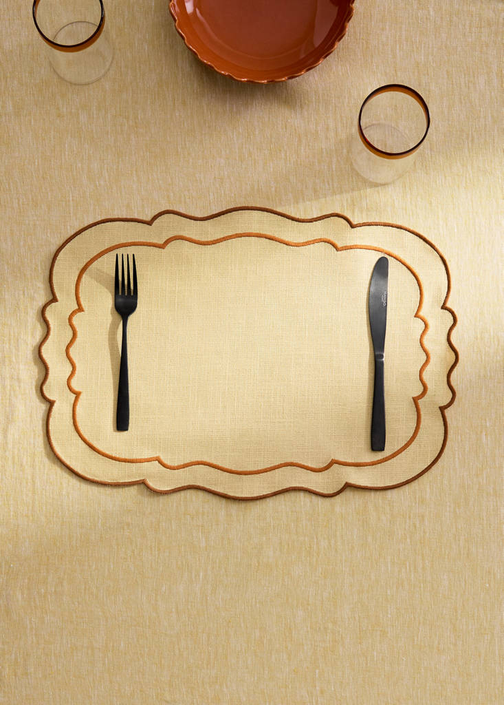 Resin cotton tablecloth wavesCurrent price [грн. 749.00 ]грн. 749.00Select a colourYellowSelect your size35x50cmAddAdd to your wishlistSee lookFree delivery to store100% Cotton. Size: 35x50cm. Resin-coated fabric. Wave design. Two-tone design. Add a colourful and special touch to your kitchen. Available in different coloursDetails, composition and careStore availability