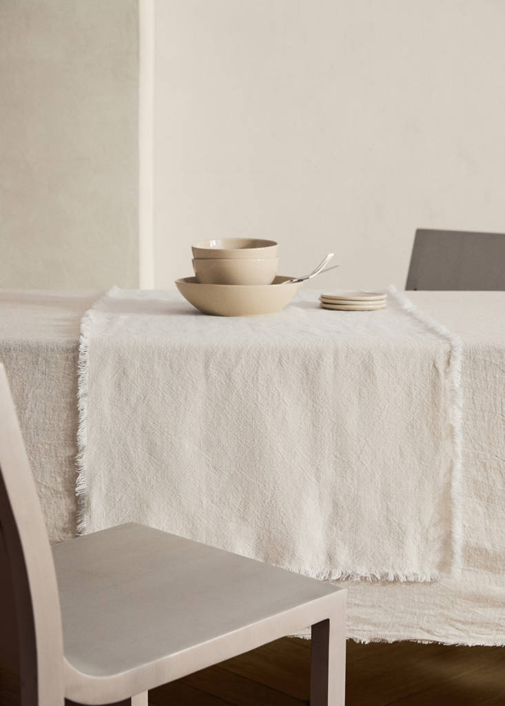100% Linen. Size: 50x160cm. Fringed finish. Individual table runner made from 100% linen, providing a natural texture, softness, and high quality. Decorate your table with a special touch. Available in different colours