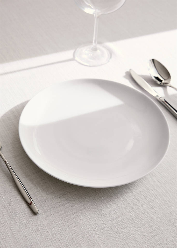 100% bone china. Dinner plate. Size: 26.5 cm. It may contain liquid. Suitable for food. High-quality and durable materials. Coordinates with more products from the collection. Dishwasher safe. Microwave safe