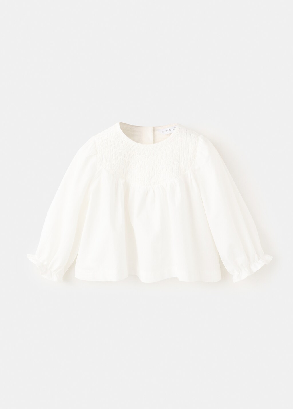 100% cotton fabric. A-line design. Gathered details. Honeycomb pattern. Rounded neck with button fastening. Long sleeves with ribbed trims.