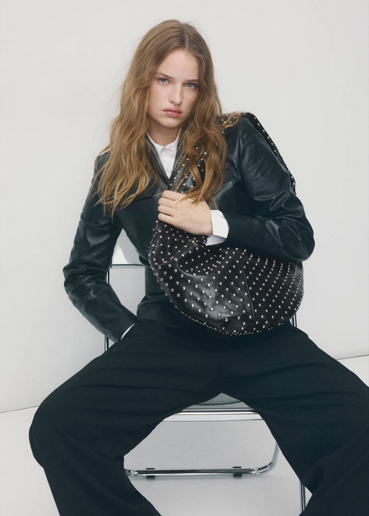 Medium. Faux leather. Stud detail. Shoulder strap. Zip closure. Inner lining. Online Exclusive