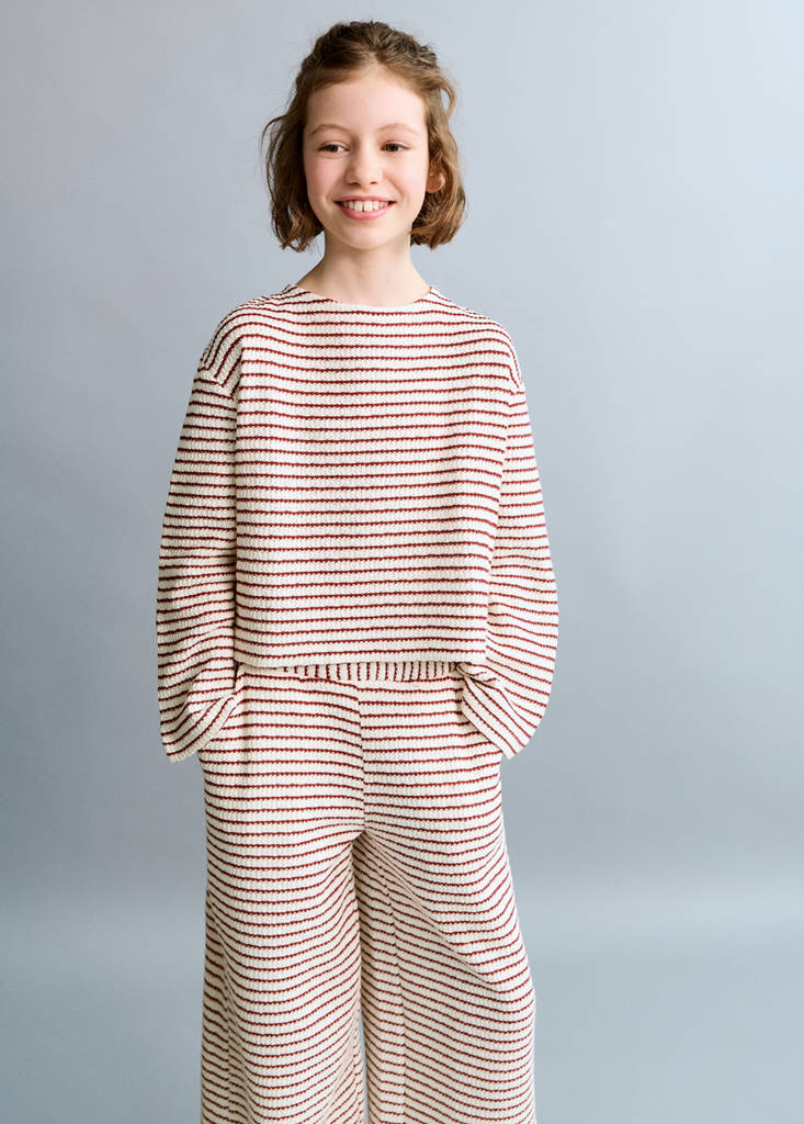 Бавовняна тканина. Тонке трикотажне полотно. Прямий крій. Кроп-дизайн. Тканина в смужку. Круглий виріз. Довгі рукави. Total look