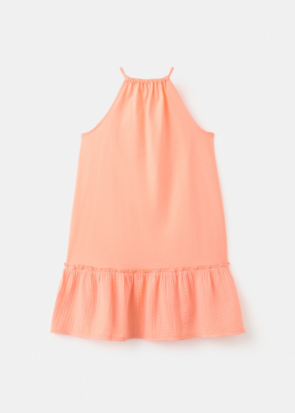 Тканина 100% бавовна. Прямий крій. Комір-халтер. Деталь з воланами на подолі