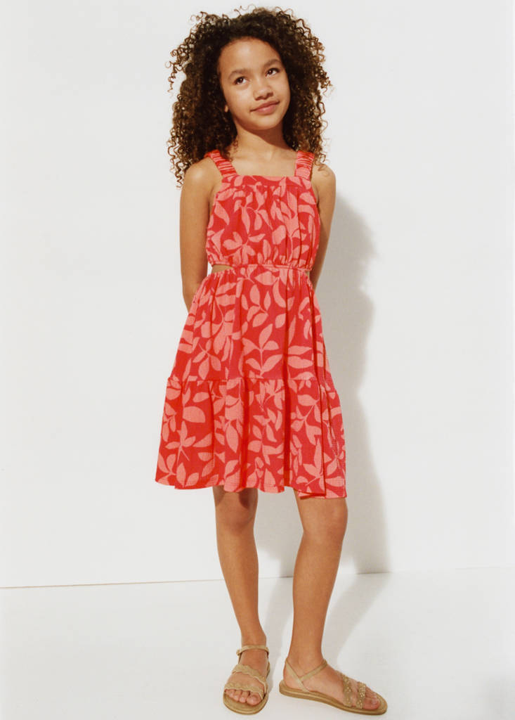 Тканина, що струмує. Прямий крій. Короткий дизайн. Квітковий принт. Прямий комір. Бретелі. Еластичний пояс. Бічні розрізи