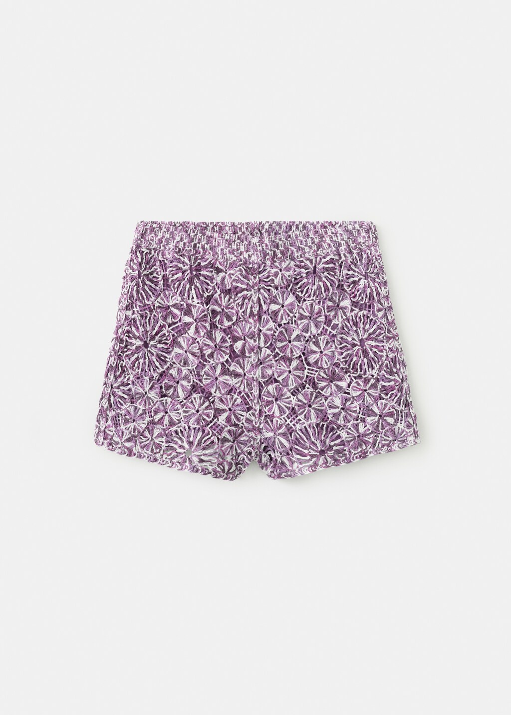 Тканина 100% бавовна. Дизайн гачком. Прямий крій. Короткий крій. Багатоколірний дизайн. Квітковий дизайн. Включає внутрішні шорти. Total look