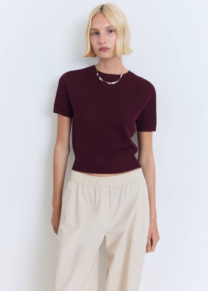 Трикотаж середньої щільності. Кроп-дизайн. Прямий крій. Круглий виріз. Короткий рукав. Без застібки