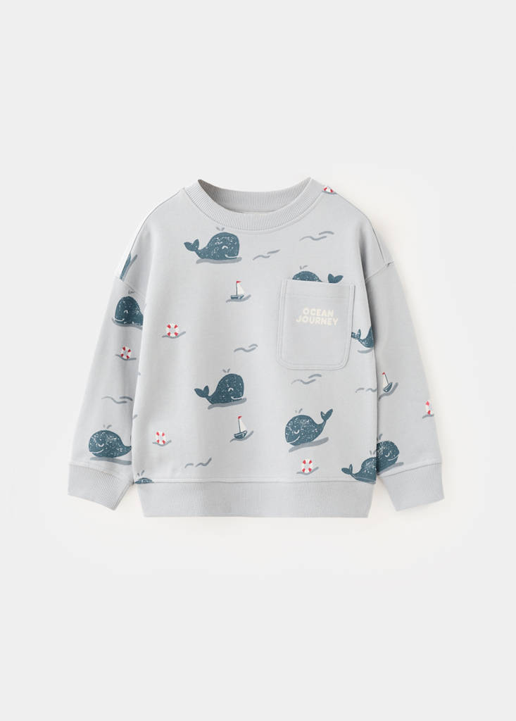 Тканина 100% бавовна. Прямий крій. Круглий виріз. Довгі рукави. Дизайн з принтом. Анімалістичний принт. Деталь нагрудна кишеня