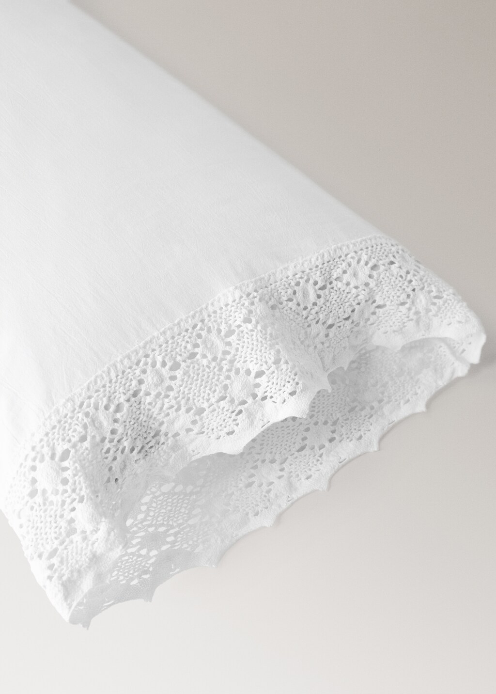 100% бавовна. Розмір: 45x110см. Виготовлено в Португалії. Бавовна перкаль 200 ниток. Тканина з бавовни garment-dyed. Широке мереживне оздоблення з класичним і непідвладним часом дизайном. Наповнювач не включено. Доповніть продуктами з колекції.