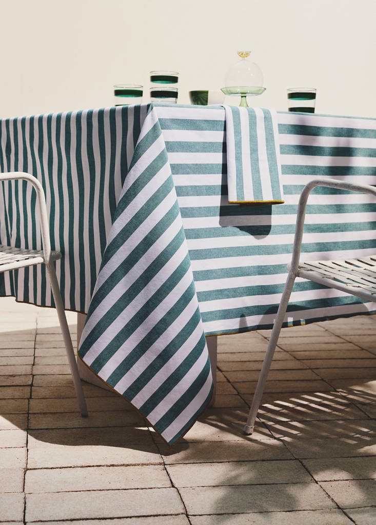 100% Бавовна. Розмір: 170x250 см. Для 6-8 осіб. Дизайн у смужку. Оверлок з вишивкою. Поєднується з іншими продуктами колекції. Ідеально підходить для додавання яскравого акценту до вашого столу