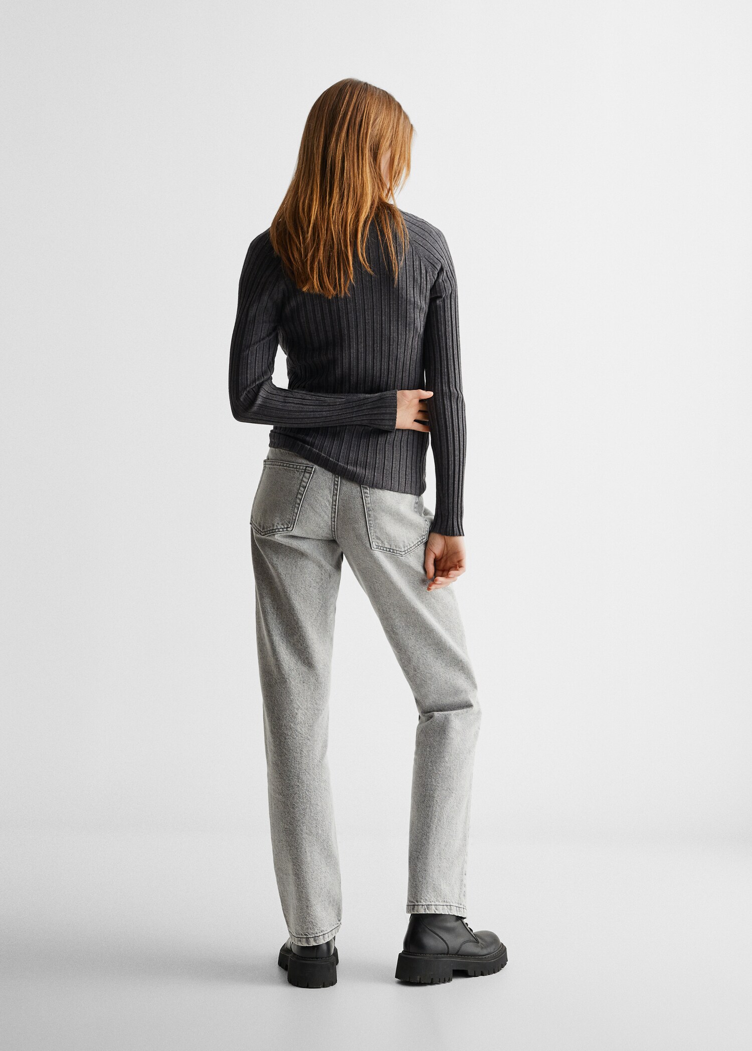 Fine knit fabric. Ribbed knit fabric. Standard design. High collar. Long sleeve.