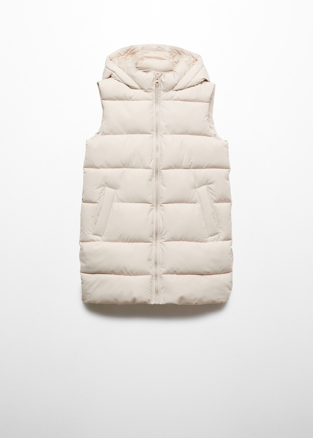 Basics Collection. Straight design. Quilted design. Long design. Two pockets with flaps. Hood. Front closure. Internal label for personal data.