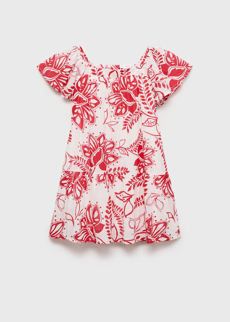 100% cotton fabric. Floral print. Short ruffle sleeve. Square Neckline. Frill on the bottom