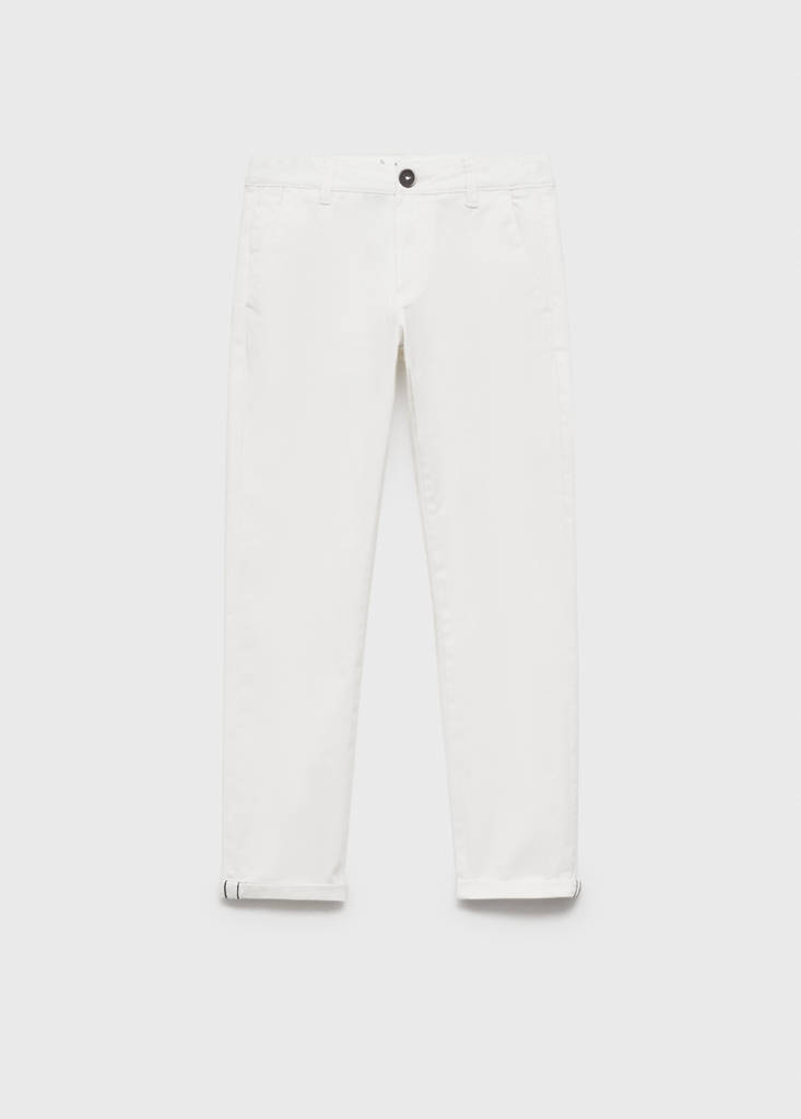 Back to school collection. 100% cotton fabric. Basics Collection. Straight design. Long design. Chinos style. Mid-rise. Slim fit. Two side pockets. Zip and button closure. Party and events collection