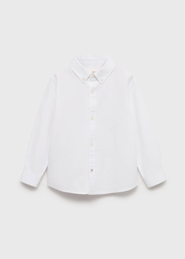 Oxford cotton shirtCurrent price [US$ 25.99 ]US$ 25.99Select a colourWhiteSelect your size9-12 (31in)Not available. I want it!12-18 (33in)Not available. I want it!18-24 (36in)Not available. I want it!2-3 years (39in)Not available. I want it!3-4 years (41in)Not available. I want it!4-5 years (43in)Not available. I want it!5-6 years (46in)Not available. I want it!DimensionsNotify meAdd to WishlistSee lookFree shipping to store100% cotton fabric. Straight design. Long design. Oxford style. Shirt collar. Long sleeves with buttoned cuffs. Front button closureDetails, composition and careStore availabilityMango StylistAsk about deliveries, returns and moreAssistant