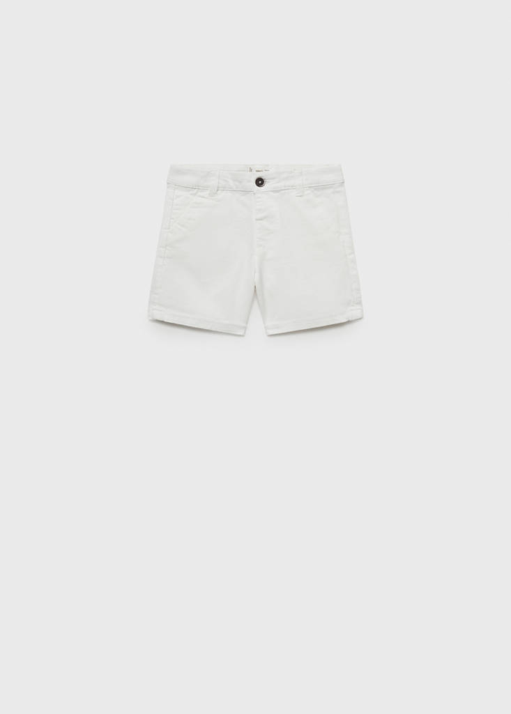 Cotton fabric. Straight design. Short design. Two front pockets. Two patch pockets at the back. Belt loops. Button and zipper fastening