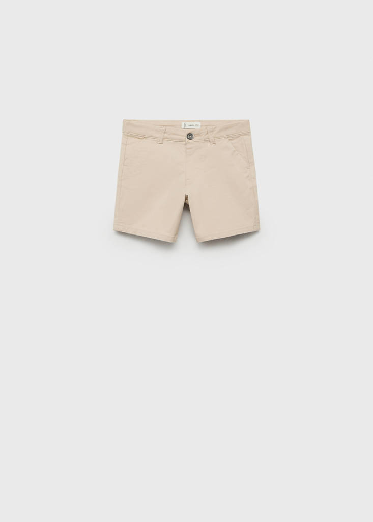 Cotton fabric. Straight design. Short design. Two front pockets. Two patch pockets at the back. Belt loops. Button and zipper fastening