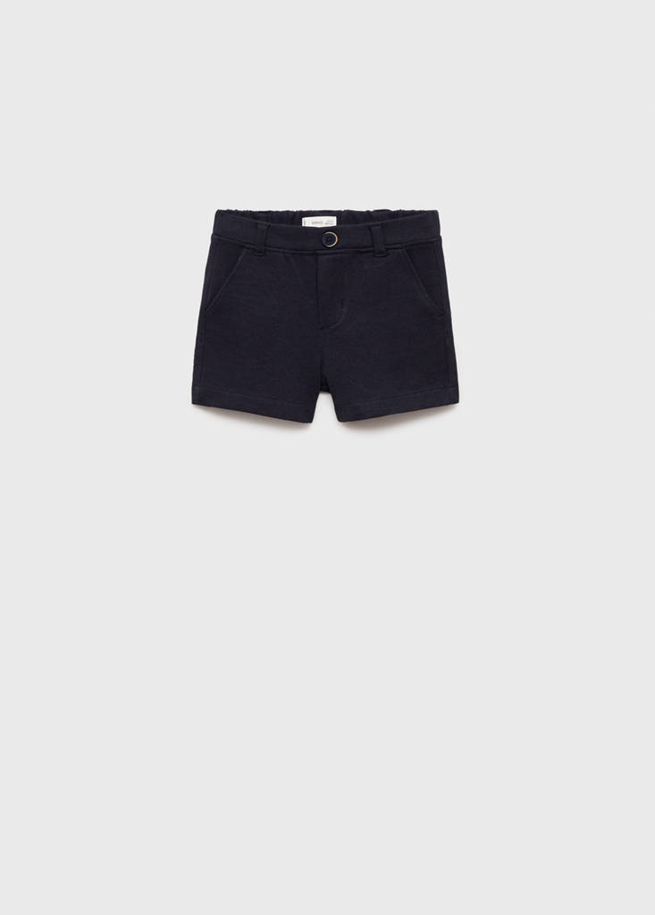 Cotton fabric. Piqué fabric. Short design. Elastic waistband. Decorative button. Party, ceremony, and communion collection
