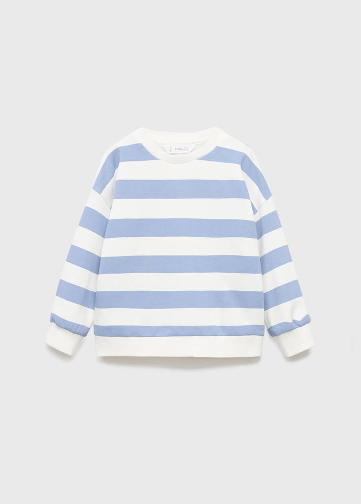 Striped cotton-blend sweatshirtCurrent price [US$ 29.99 ]US$ 29.99Select a colourBlueSelect your size9-12 (31in)Not available. I want it!12-18 (33in)Not available. I want it!18-24 (36in)Not available. I want it!2-3 years (39in)Not available. I want it!3-4 years (41in)Not available. I want it!4-5 years (43in)Not available. I want it!5-6 years (46in)Not available. I want it!DimensionsNotify meAdd to WishlistSee lookFree shipping to store100% cotton fabric. Oversize design. Striped design. Round neck. Long sleeves. Two side pockets. Ribbed neck, cuffs, and hemDetails, composition and careStore availabilityMango StylistAsk about deliveries, returns and moreAssistant