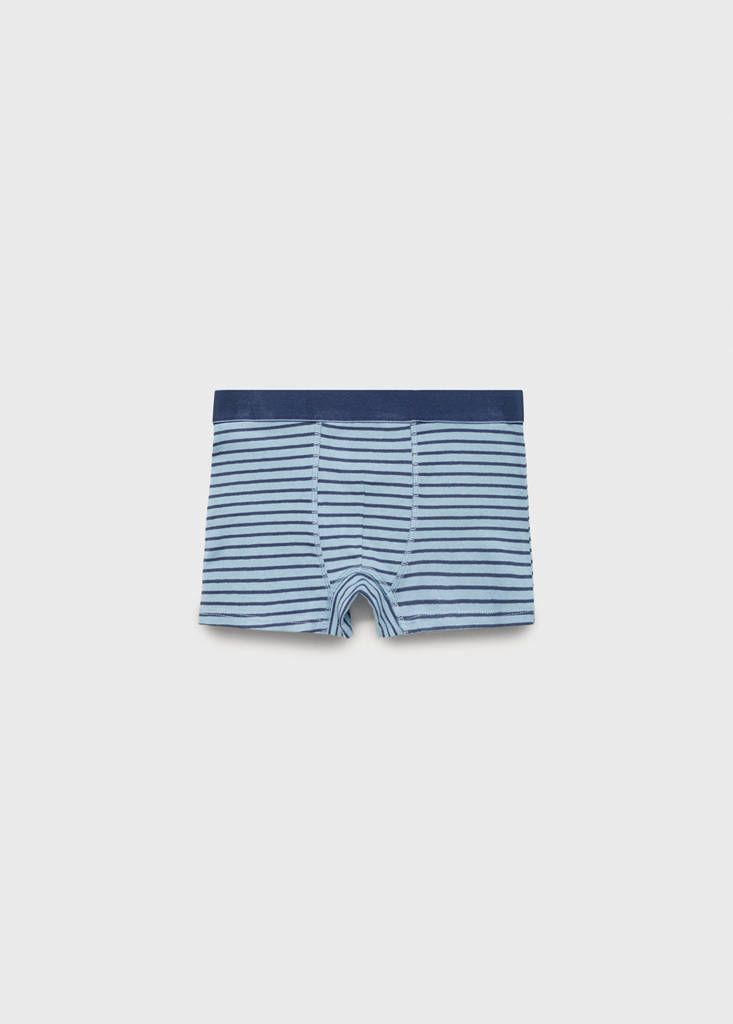Pack of 3. Cotton fabric. Stretch fabric. Combined print. Elastic waistband. Boxer type. Pack of three. Straight design. Short design. Combined print. Elastic waistband